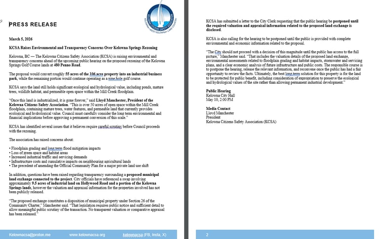 Watch the FULL 48min Video, with Alexandra Wright discussing the key issues about Kelowna Springs and the City of Kelowna. (25/2/26)