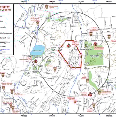 Health Canada incident reports show harms to people from Btk spray. Over homes, schools, gardens, parks, orchards, farms, businesses, wineries, McDougall Creek, streets and highways are situated within spray zones, affecting humans, pets, wildlife, birds, bees, water life and non-target insects.